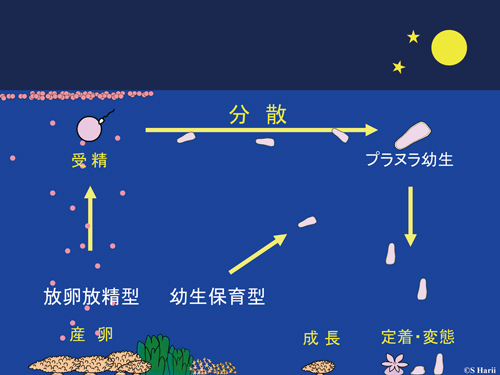 山野:造礁サンゴは、体内に小さな藻(褐虫藻)をたくさんすまわせています。褐虫藻は、植物プランクトンの一種で、活発に光合成をしています。造礁サンゴは体内の褐虫藻の光合成によってエネルギーの多くを得ています。サンゴは「動物」ですが、光合成をするなど「植物」としての性質を持ち、さらに石灰質で「鉱物」としての性質も持つおもしろい生き物です。
